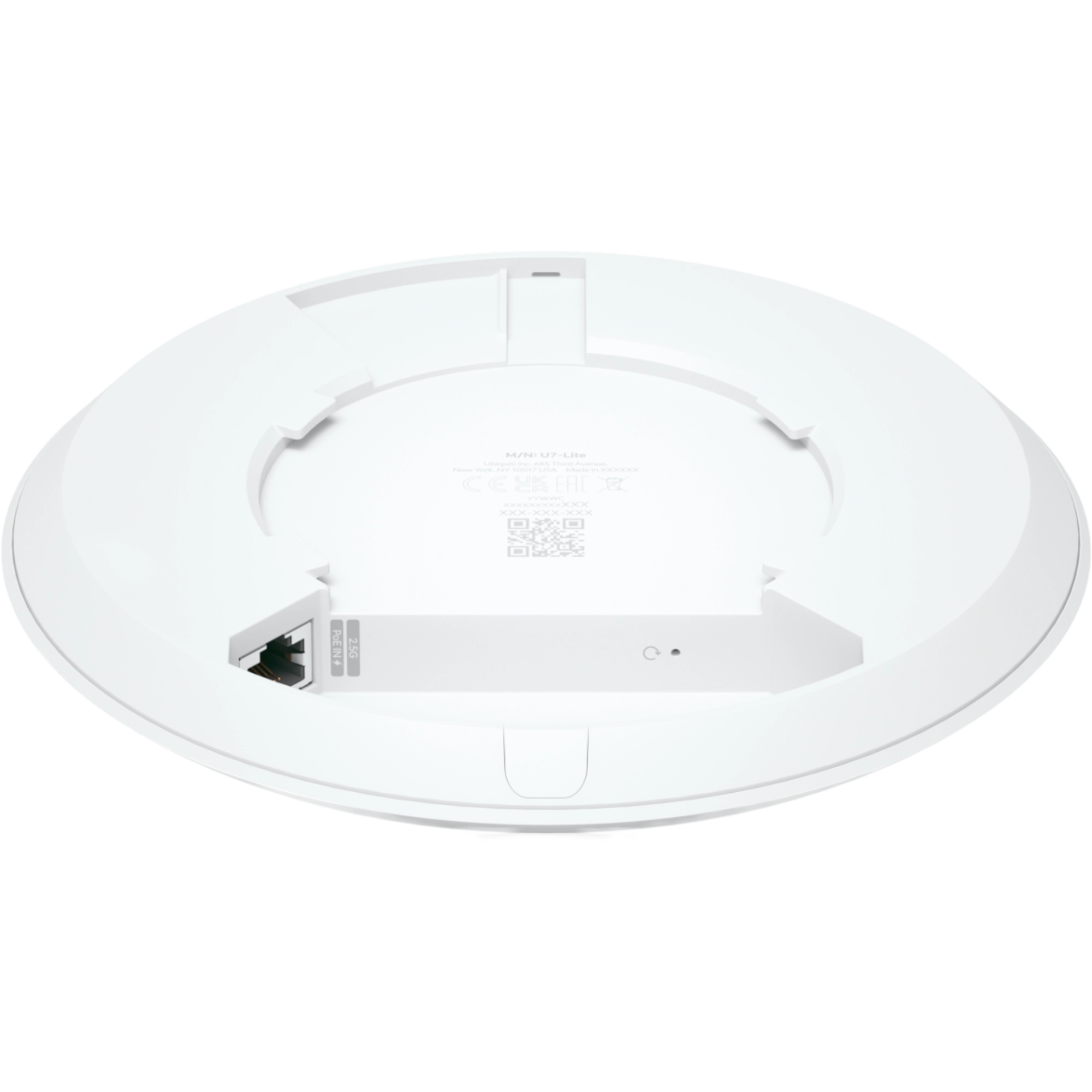 The Ubiquiti U7 Lite is a dual-band WiFi 7 access point featuring high-gain integrated antennas and support for 2x2 MU-MIMO on both 2.4GHz and 5GHz bands. It delivers up to 5Gbps aggregate throughput and includes a 2.5Gbps Ethernet port for high-speed wired connectivity, making it a compact and efficient choice.