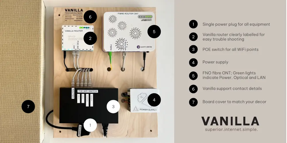 At Vanilla, we’re all about keeping things tidy, Marie Kondo style! We go beyond just your router, offering a clean, organised solution for your distribution board and cable clutter.