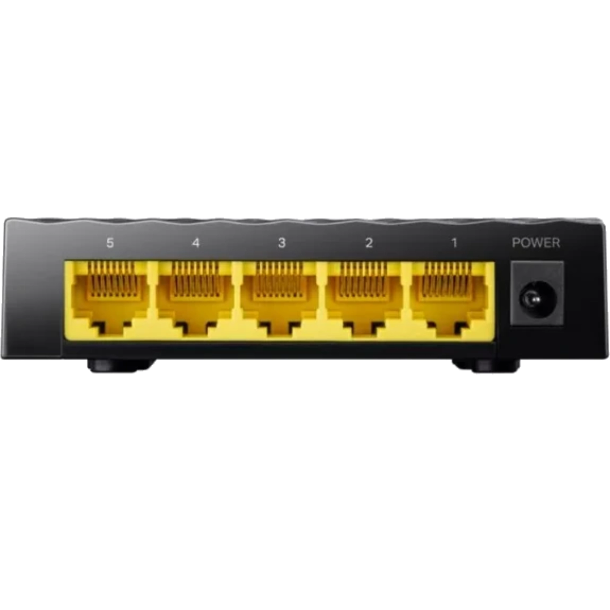 It has five (5) 10/100/1,000 Mbps auto-negotiation ports, with which to establish a LAN network. It features enhanced transmission speed and eliminates possible transmission bottlenecks. It is easy to use and ideal for school dormitories, small offices, home offices and video surveillance.
