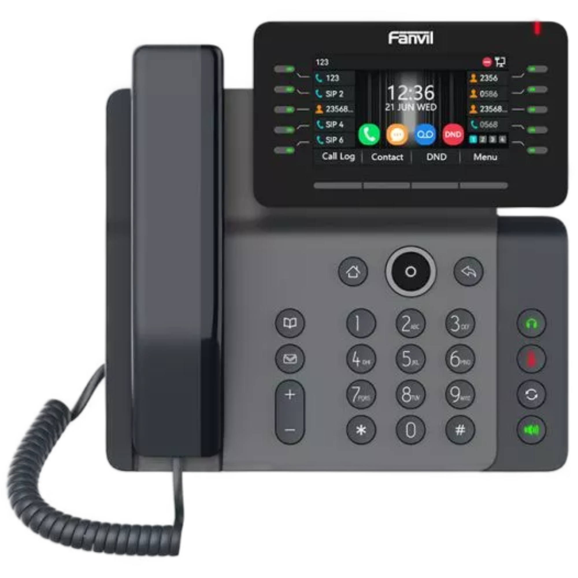 Fanvil's FAN-V65W is a dual band WiFi 5 VoIP phone featuring dual Gigabit Ethernet ports, video support, 20 SIP lines, HD Audio with Opus support and a 4.3'' high-resolution colour LCD screen. The unit also features integrated bluetooth support, as well as a USB 2 port for scalability.