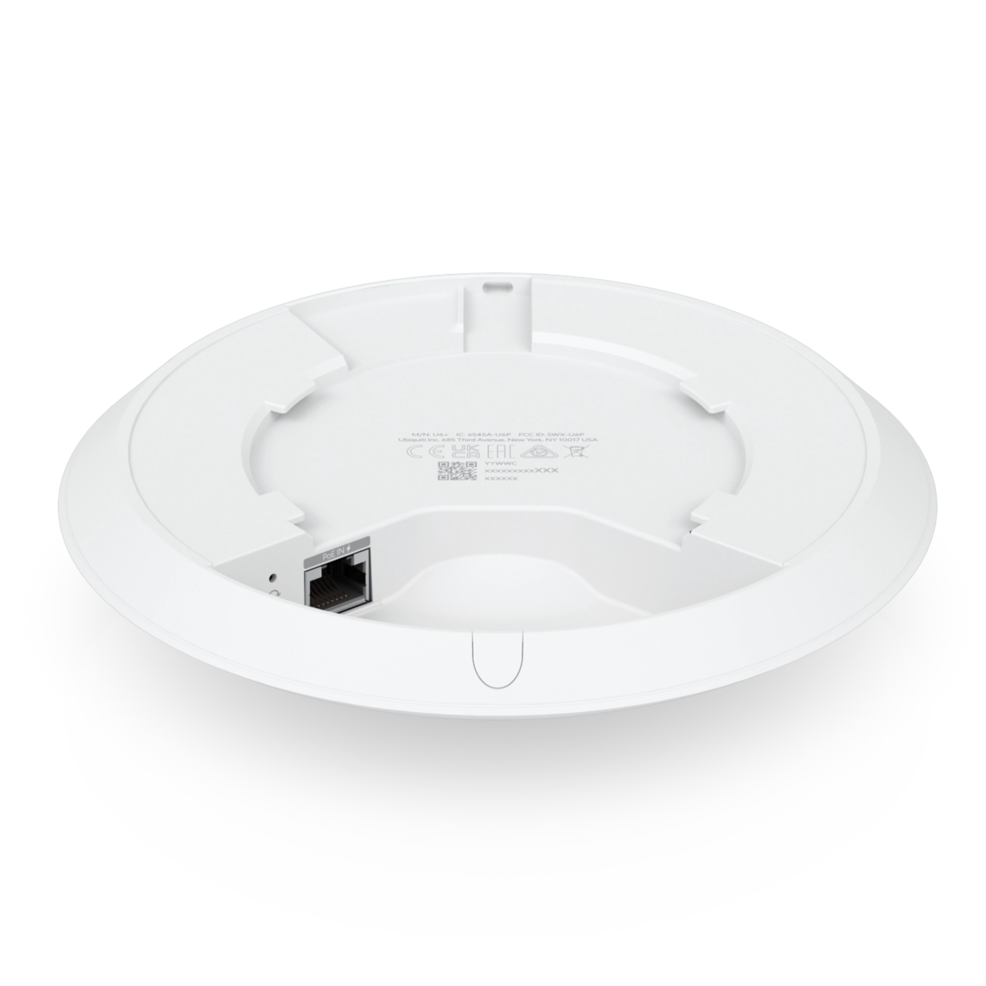 The UAP-U6+ UniFi Access Point Enterprise access point from Ubiquiti Networks is a scalable enterprise WiFi 6 access point solution designed to be easily deployed and managed. It supports the 802.11ac WiFi standard with speeds of up to 2400 Mb/s in the 5 GHz radio band, and up to 575 Mb/s in the 2.4 GHz radio band. The WiFi system offers simultaneous dual band operation with 2 x 2 MIMO technology for each band. It has a range of up to 400m and two Gigabit Ethernet ports. This UniFi Access Point (AP) has a sleek design and can be easily mounted to a ceiling tile or wall, using the included mounting hardware.